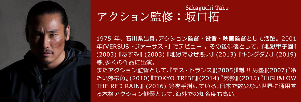 監督:山口義高 アクション監修:坂口拓 製作総指揮:吉田尚剛 製作:松井智 プロデューサー:木村俊樹 小笠原宏之 アソシエイトプロデューサー:岡田慎一 脚本:龍一朗 音楽:栗本修